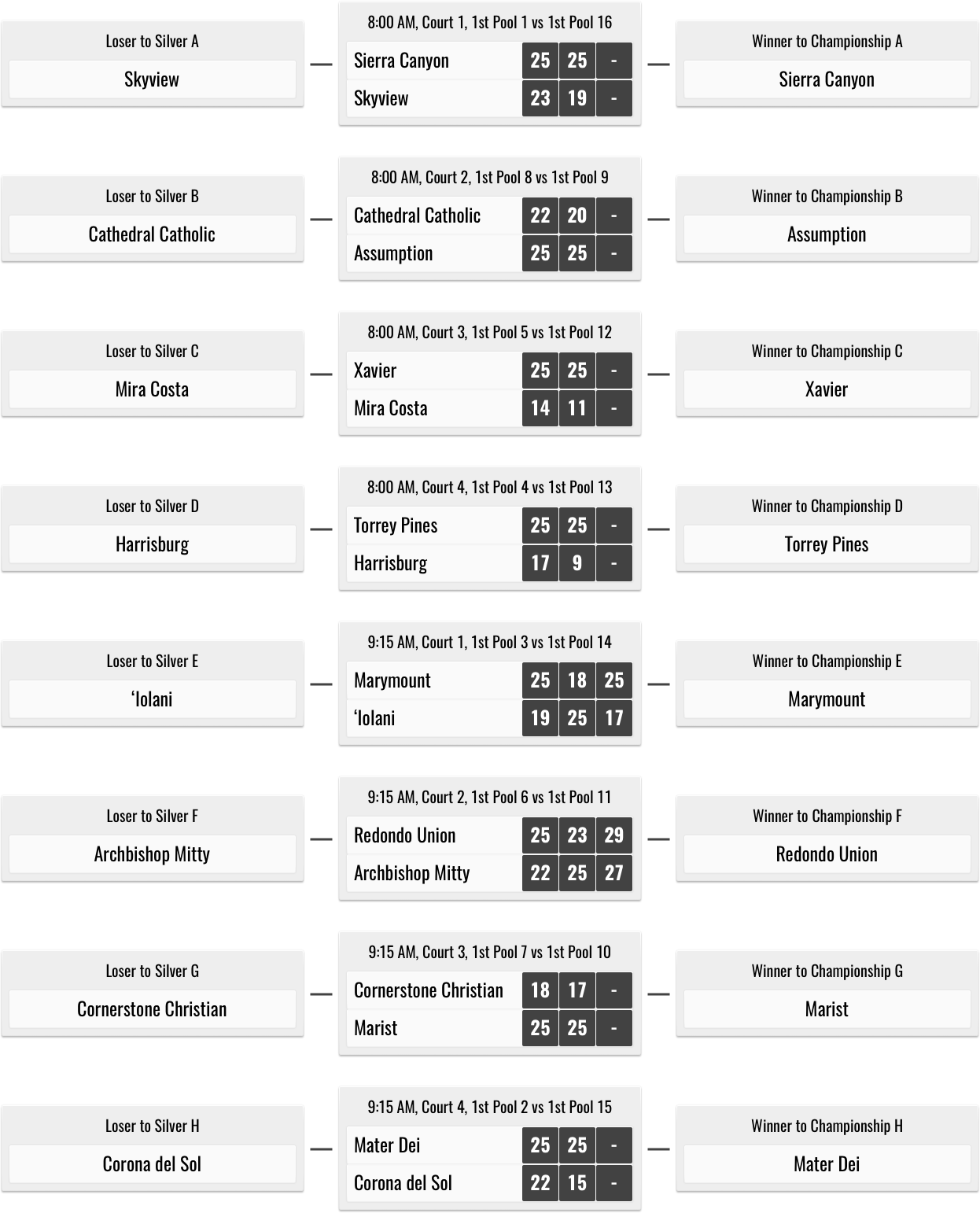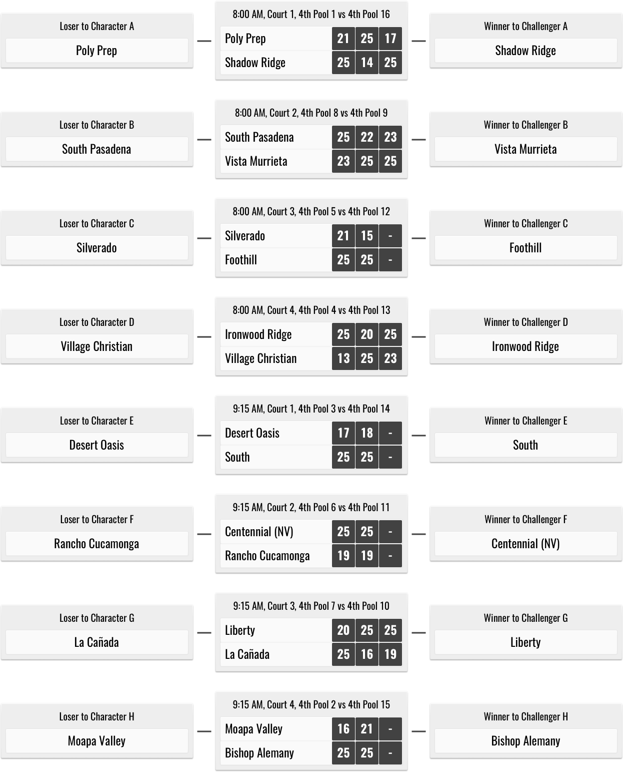 This qualifier is for all first place pool finishers.